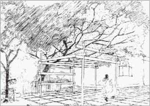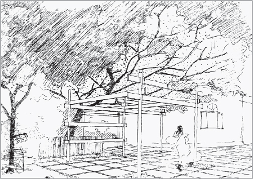There was a mango tree where the Service Tree now stands. The mango tree had to be cut down; the Mother asked us to get a Service Tree plant from the Botanical Garden. It was planted on a Tuesday in [May] 1930.